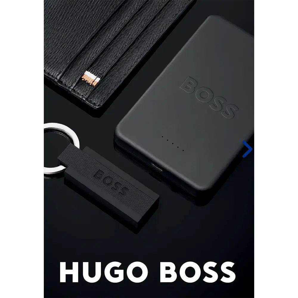 Le catalogue présente une sélection de produits premium signés HUGO BOSS, distribués au Canada par St-Regis Group. Il inclut une gamme d’accessoires et articles corporatifs haut de gamme, tels que ensembles stylos et porte-cartes, stylos rollerball, ensembles cadeaux, porte-clés, articles électroniques, petits articles en cuir (portefeuilles, porte-passeports) et accessoires lifestyle.